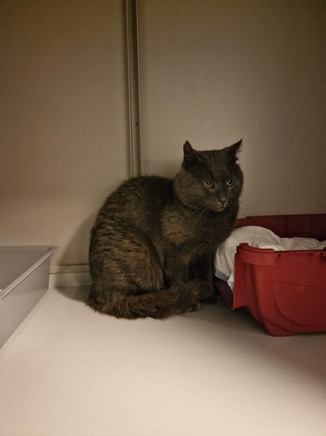 Grå semilanghåret kattepus kom inn til oss 25.10.2022 etter å ha blitt observert i Reipvegen i over lang tid.