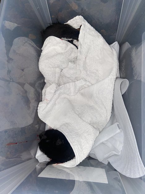 Pusen er død, men hadde fortsatt litt temperatur i kroppen, så det har nok akkurat skjedd. Ble funnet midt i veien og har mest sannsynlig ikke lidd.