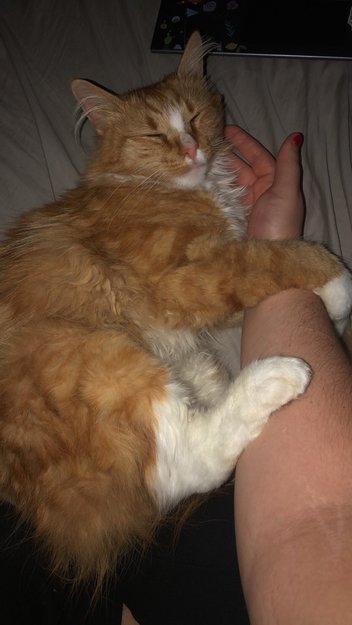 Han har hvit mage og hvite poter som ser ut som hvite sokker; korte sokker foran og lange sokker bak. Han er i tillegg litt hvit over nesen.