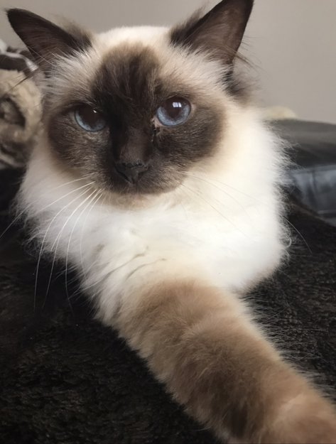 Luna er en 12 år gammel sjenert Hellig Birma, vekt 3,2kg , så det haster å få henne hjem. Hun er mest inne, men om hun må ut,er hun ute i max 30 min og kun i nærheten.