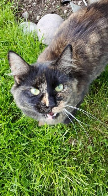Bestemor passet katten påsken 2017 og den ble borte. Antakelig smettet ut av balkongdøren, i en 3.etasje… Vi lette aktivt i hele område flere dager etterpå uten hell. Jeg har fortsatt et håp om at hun finnes der ute.