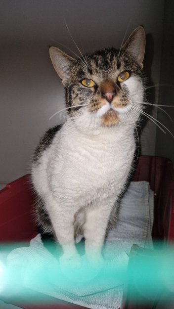 Det ble etterlyst eier på sosiale medier uten hell, dermed er den tatt inn til Dyrebeskyttelsen Norge Nord-Trøndelag. Kontakt oss om det er din katt.