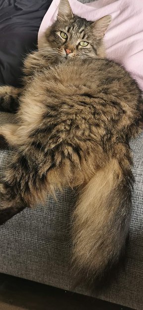 Katten min Mufasa har ikke kommet hjem på over 1 uke nå og det er ikke første gang det skjer. Savner han fælt... Han pleier ikke vær borte så lenge så dette er ikke vanlig. Han bor på Horpestad og pleier å holde seg til dette området så vidt jeg vet. Han er kastrert, er langhåret og har brun/grå pels. Ser ut til å vær en blanding av norsk skogkatt og annet. Har også noe tiger striper på hodet og bena og en slags hvit farge både fra haka og ned til og med halsen men også rundt munnen. Fargen på brystet og magen er en slags blond farge. Legger ved bilde. Han kan forresten også vær ganske sky mot fremmede. Håper at han kommer hjem igjen snart ❤