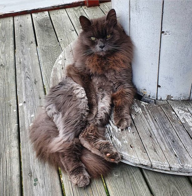 Påsan er en langhåret katt som blir barbert en gang i året. Pelsen er derfor ikke helt vokst ut igjen. Har litt brunskjær i fargen. Kan være skeptisk/skvetten for andre mennesker.