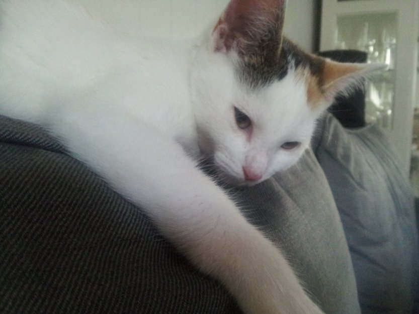 Pusen vår Fie hadde med seg en vakker kattunge hjem i går kveld. Den er rundt 3 mnd, hvit med gul/oransj/brune flekker. Den slo seg til ro med en gang og i frykt for at noe skal skje med den (kjørt over/andre katter angriper) har vi tatt vare på henne.. Hun kommer godt overens med våre to katter, men for sikkerhetsskyld holder vi dem fra hverandre. Rop ut om du kjenner noen som savner denne vakre kosete skapningen! :)