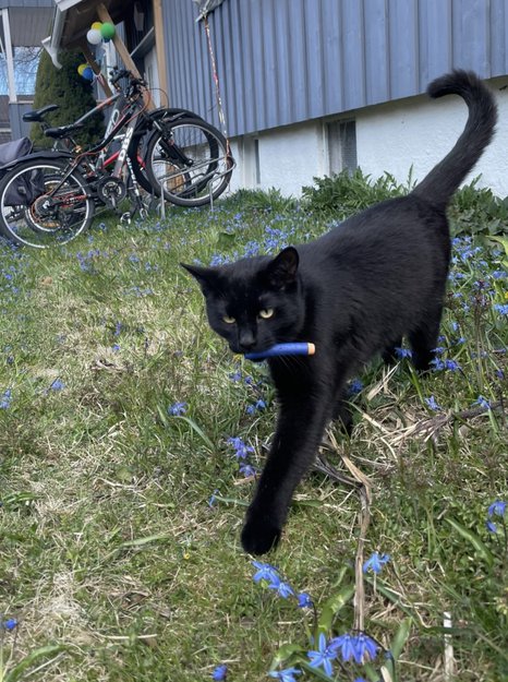 Hun er 1,5 år, svart korthåret pels med bittelitt hvitt på halsen, turkis halsbånd(mulig mistet)