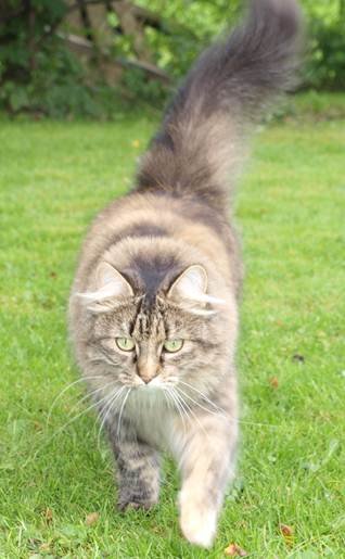Pusen forsvant fra kennelen den 5.juli. Vi har lett overalt og hatt annonser i avisa og hengt opp plakaten fra dyrebar overalt. Så fikk vi endelig en telefon fra en mann som hadde sett den i hagen sin. Vi ropte på den og hørte tynn mjauelyd, og der etter en måned ute alene fant vi den igjen:) Den har passet utrolig godt på seg selv mens vi lette. Den var tynn, men kjente oss igjen. Nå har pus vært til sjekk hos dyrlegen og spiser og sover.