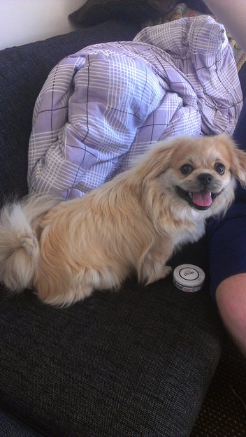 Fant denne flotte guttenc mens han sprang litt uti den meget trafikerte veien ved domkirka i fredrikstad. Har ringt politiet men ingen savner den. Tror det er en hanhund, noe ala tibetansk spaniel! Veldig glad i kos, ellers lydig og litt tørst:)