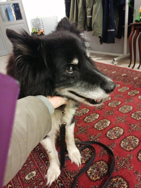 Hund løp i trafikken, ble plukket opp av bilist, huseier i nærheten tok hunden med til Fagerstrand dyrebutikk.
