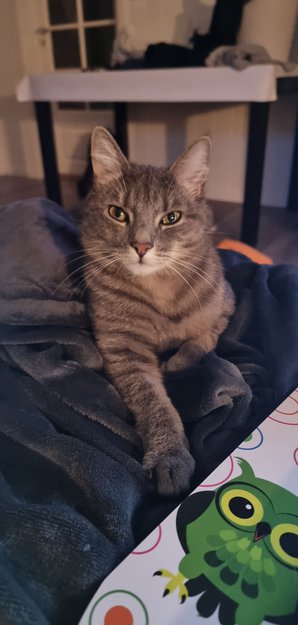 Sto opp tidlig for å se om katten var utenfor, hørte mjauing da jeg gikk mot ytterdøra og da jeg åpnet kom hun springende i full fart. Var veldig sulten og litt skvetten, så mulig reven har skremt henne.