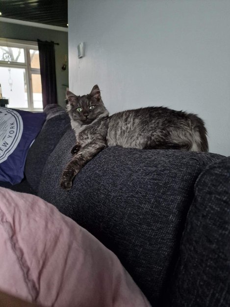 Sølv/grå/svart hannkatt ble funnet i Moss