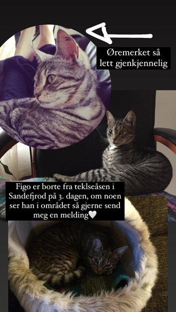 Fighan har vært borte siden 13.11.22 og er sårt savnet! Han holder til i teksleåsen Sandefjord hos min farmor og vandrer aldri langt. om noen i området har sett han hadde jeg blitt glad for en melding, skvetten pus så tror ikke det er vits å rope på han. han er øremerket så lett gjenkjennelig!