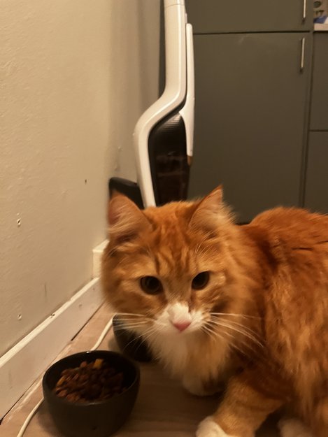 En katt som har vært veldig kontaktsøkende over de tre siste dagene. Økende kontaktsøkende. Sett inn vinduet på leiligheten, prøvd å komme seg inn flere dager. Virker tynn. Den tredje dagen tok jeg den inn for å gi den litt mat, den hev i seg maten.