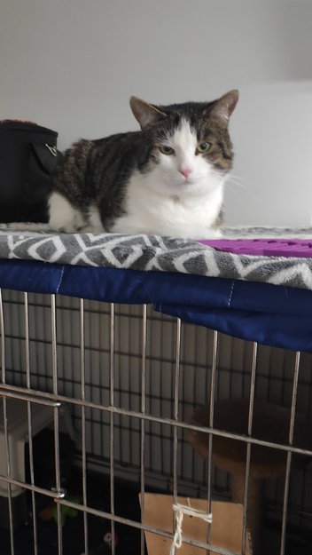 Hentet til sitt for alltid hjem fra FOD-gården, klarte dessverre å stikke av sammen med kompisen Gustav (annen katt) ut døra ved et uhell.