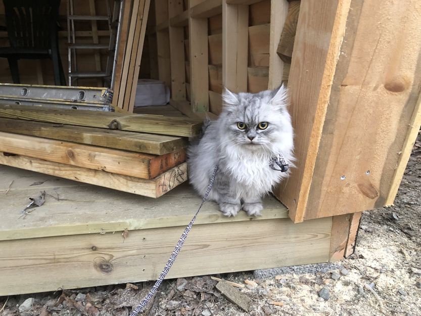 Katten er veldig sky fordi den ikke har forholdt seg til andre enn oss i familien.