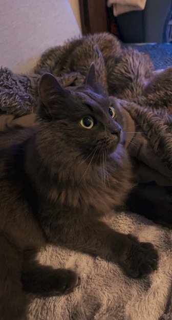 Pus er hel grå med halvlang pels.