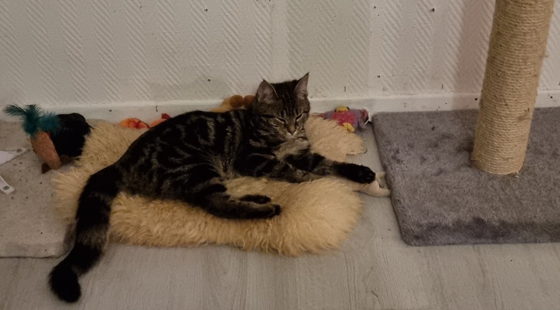 Pus har nok hoppet ut soveromsvindu. Vi er på julebesøk fra Bergen og hun har ingen tilknytning til stedet. Hun er fem måneder gammel, svært kosete og nysgjerrig.