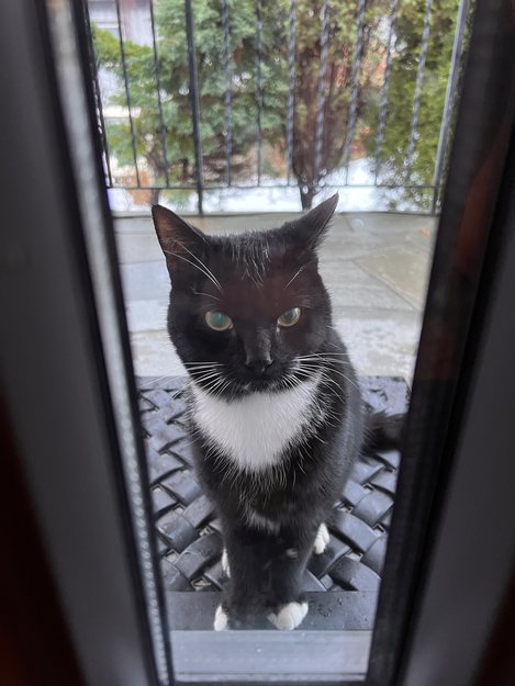 Står utenfor, mjauer og vil inn, på andre dagen.