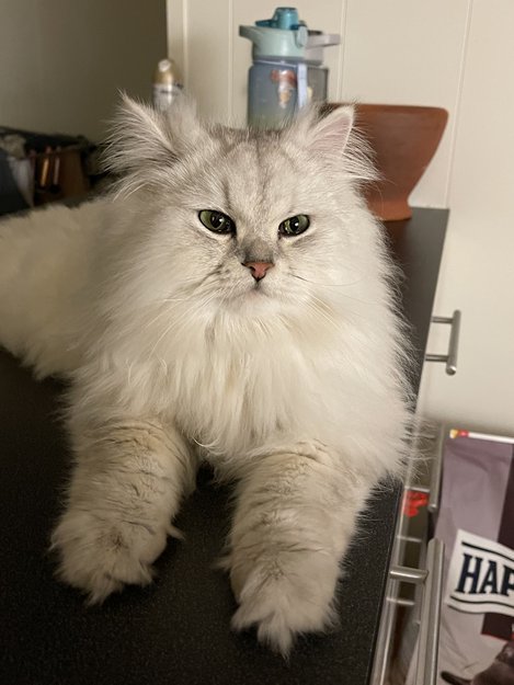 Lang hår persisk/britisk hann katt, han er kastrert. Lang hale, ikke så mye hår. Sjenert og ikke glad mennesker, han gjenkjenner navnet hans Maki.