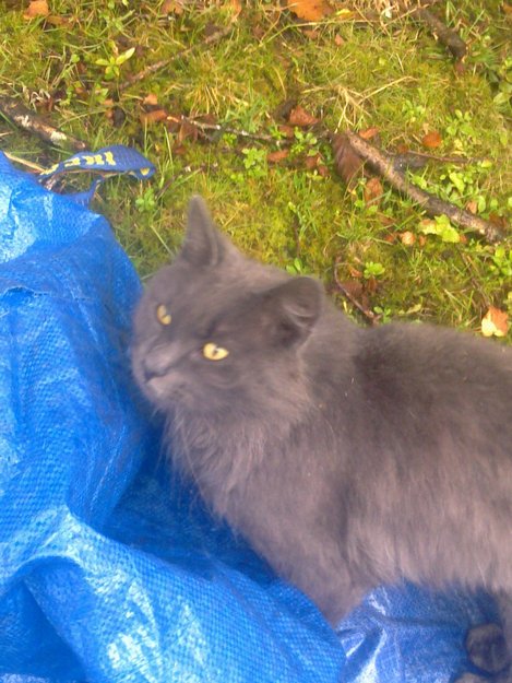 Vi har en nydelig kosete gråpus som går oppe med beitet til hestene våre på Dolvik i Søreide. Beitet ligger rett ovenfor Grimstadveien og pusen pleier som regel å komme nedenfra der. Kommer morgen og kveld når jeg skal fore hestene. Den har kommet fler dager i strekk. Den er helt grå. Den er ikke særlig tynn, og ser forholdsvis OK ut i pelsen, men har en del floker bak med halen. Ekstremt kosete. Litt vanskelig å få sjekket kjønn på den, da den bare skal kose men virker veldig som en hannkatt. Savner noen denne nydelige pusen? Mail monty_tinnfot@hotmailcom