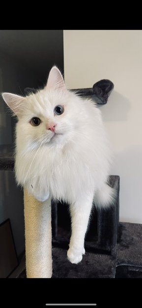 Blått å gult øye, liten (bitteliten) svart flekk på hodet
