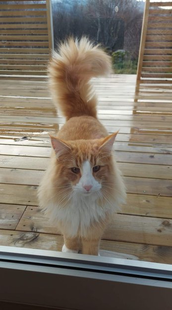 Lang hale, markert ansikt med dusker på ørene - typisk gutt fra Norsk skogkatt rasen.