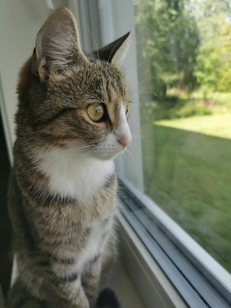 Grå sort hvitstripet hunnkatt var savnet i Blaker