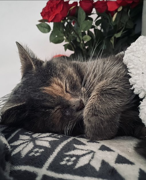 12år jenta er borte og vi savner ho utrolig mye. Noen som sett henne ? Grå med oransje flekk på pannen og en manglende hjørnetann på venstre side.