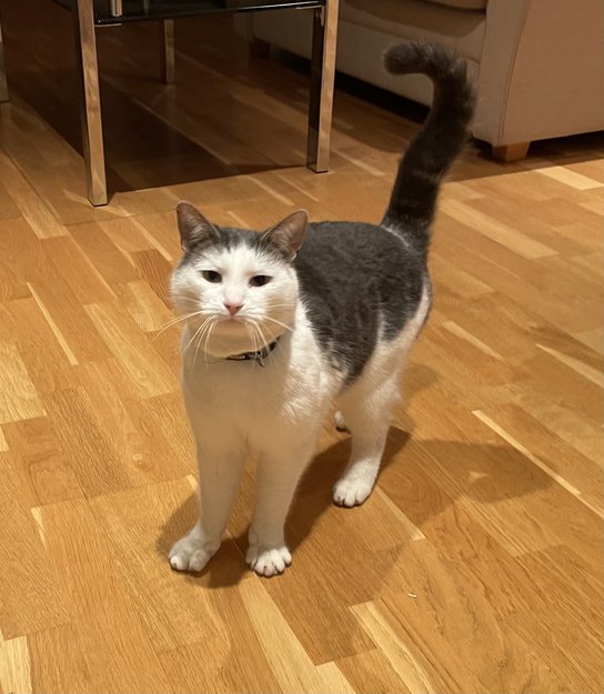 NB! Katten har opprinnelig ikke halsbånd, men her om dagen hadde den plutselig det på, med teksten «noen som savner denne katten..? Ring…»