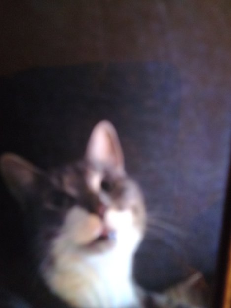 Grå/ hvit. Hvit flekk på ene siden av ansiktet.