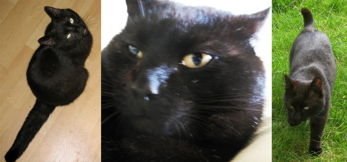 sort hannkatt, veldig vagt stripete mørkebrun i pelsen. litt hvit nederst på magen. høyre øye har en tendens til å bli irritert. har noen få hvite enkelthår på ryggen og magen. grov i målet og ukastert og kraftig.