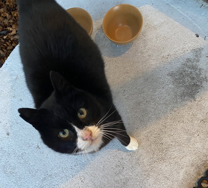 Vi har hatt denne flotte katten utfor døra vår siden starten av januar. Muligens vandret rundt her før det også, men begynte etter det å oppsøke oss enda hyppigere.