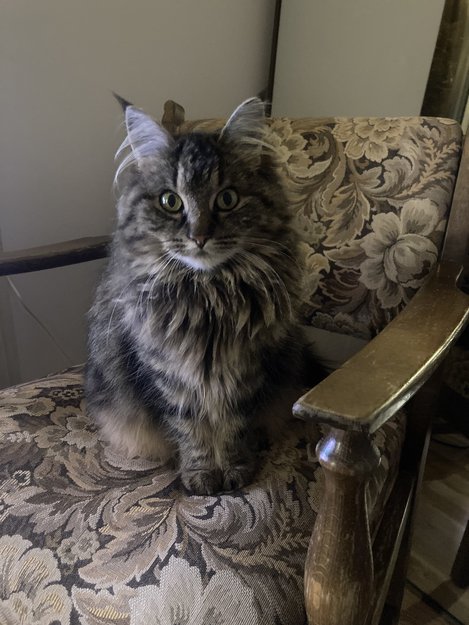 Hun er liten, og ganske symmetrisk i mønstrene i pelsen og sorte hår på ørene -litt gaupeaktig.
