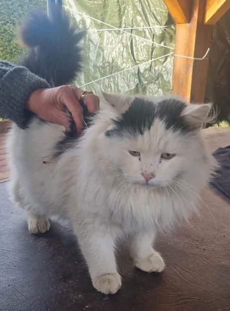 Pus observert lenge på Knapstad. Sliten, ustelt pels som var full av floker. Tatt inn av FOD og fått navnet Snøflekk.