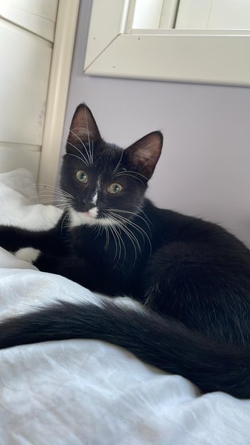 Etter 2 døgn så lå katten ved inngangsdøra. Frisk og rask og VELDIG kosen :-)