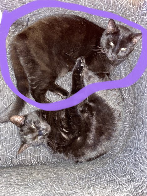 Svart, korthåret. Uten hvite hår i brystet (vi har også bror som er nesten helt lik, men med hvite hår i brystet). Pleier ikke å gå langt, så godt mulig han sitter fast i et tre eller i en bod.