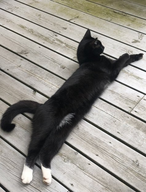 Svart katt, litt hvit under hake og på potene. Ca 3,5 år
