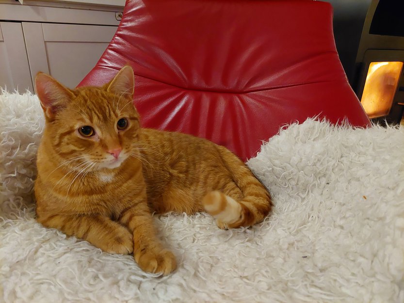 Leon er 2 år gammel, slank, ligner en tiger i mønster og farge. Har tatovert tallet 10 i ene øret.