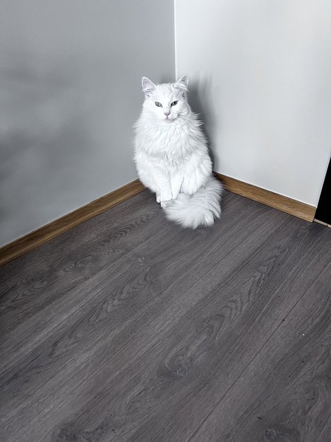 Han gikk fra hjem kl 22.30. Han ble ikke sp lenge ute i vanlig tid. Men han kom ikke i går hjem. Han er helt hvitt katten.