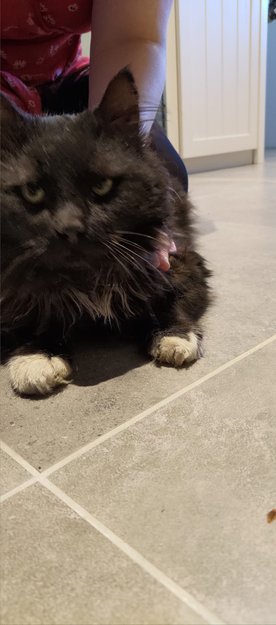 Fant en rufsete og møkkete hannkatt i Vestfossen, veldig kjælen og sulten, i går kveld. Gikk inn til oss uten så mye som et hei. Ikke chippet eller kastrert. Noe tovet pels men ser ikke ut til å ha vondt.