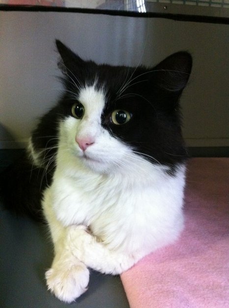 Ung, ukastrert og umerket hannkatt. Var litt beskjeden med en gang, men ble fort trygg, kosete og pratsom.