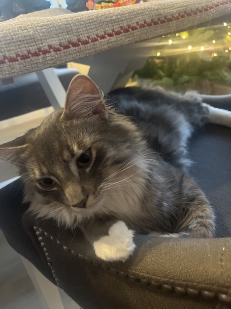 Han kjennetegnes av hvite poter. Lange hvite «strømper» på bakbeina.
