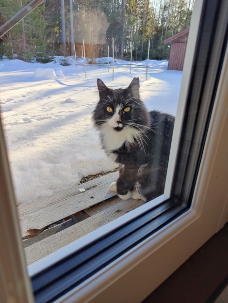 Katten har vært sett flere ganger rundt om i dette området siden i vinter. Da den har kommet og gått har man vært usikre på om den hører til noe sted. Det har blitt lagt lapper i postkasser og hengt opp oppslag uten at noen i nærheten har sagt de eier katten. Den har blitt sjekket for chip (hadde ikke) men er kastrert. Kosete hannkatt.