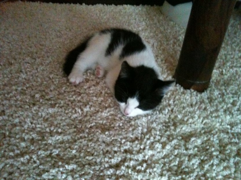 Hun er en liten ulykkesfugl og dagen hun forsvarnt hadde hun et hovent øyelokk. Hun har ved en tidligere annledning kommet hjem med et stikk på hennes venste fot, som er blitt et lite arr. Hun har luft problemer. Så om du har tatt henne til deg vil du fort merke at hun fiser hele tiden. (ærlig sakt). Hun er hvit med svarte merker. halen er hel svart.