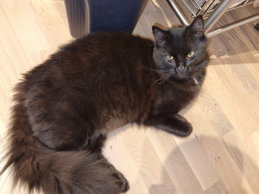 Vi hadde med katten på hytten, den har ikke vært der før. Vi skulle ha den inne hele påsken for at den skulle bli vant til hytten, men en av ungene slapp den ut ved et uhell. Han skal ha vandret litt rundt eiendomen før han forsvant.