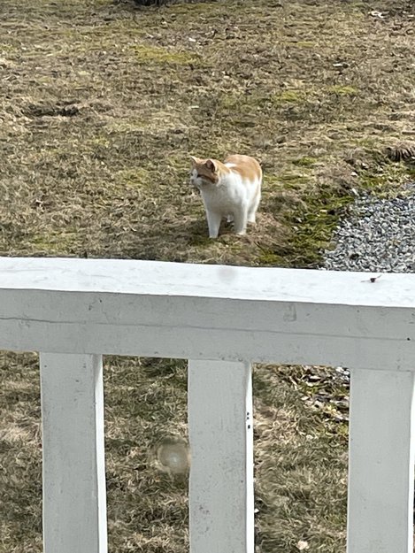 Denne katten er til stadighet rundt husene her.