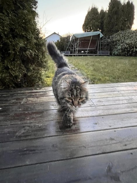 Denne kosete søtnosen kom på besøk i hagen vår på Torsdag og har blitt værende her siden. Ukjent om det er hannkatt eller hunnkatt men på mjauingen kan det tyde på en liten hunnkatt. Den ønsker å ha kontakt med både oss og hannkatten jeg har. Vi er bekymret for at denne ikke har et hjem og skal få sjekket chip i dag. Håper noen her savner denne og får den hjem. Den blir nok værende her en stund, ser ikke ut som den forsvinner med det første.