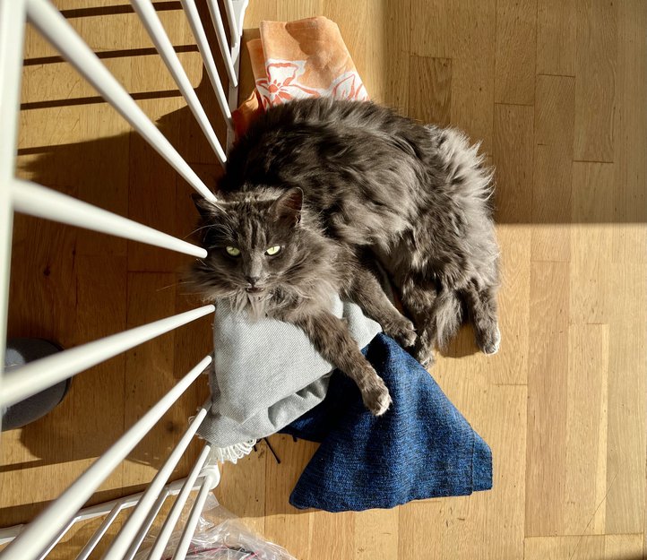 He is a boy, dark gray. His hair is longer in winter and shorter in summer.