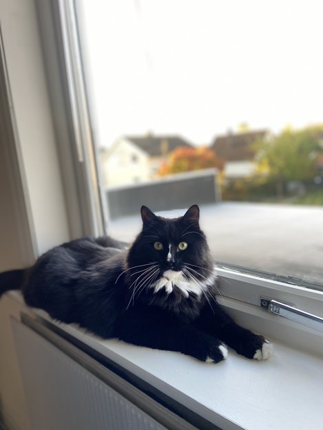Ble sist sett i går kveld. Veldig uvanlig at han er ute så lenge uten å komme på vinduet der vi bor. Har sjekket hver time i vinduet i natt, men han har ikke kommet. Vært ute flere ganger i nærområdet i formiddag med godteri og ropt etter han, men har ikke funnet han enda.