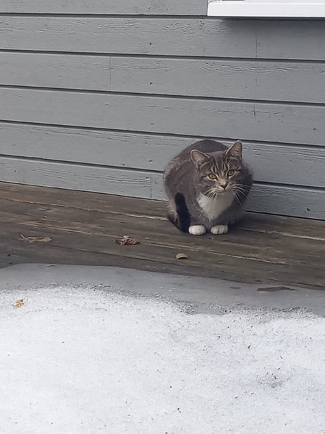 Denne katten har hengt rundt vårt hus i noen dager. Vet ikke om den er hjemme imellom de gangene jeg har sett den.